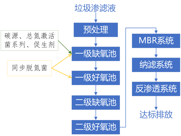 垃圾滲濾液生化處理常用甲醇、葡萄糖作碳源,其成本遠高于復合碳源。此外,很多企業采用以納濾或反滲透為主的膜處理工藝作為最后的深度處理,造成滲濾液處理成本長期居高不下。