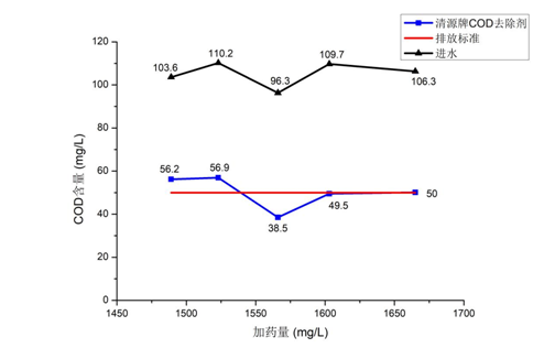 2)在二沉池投加我司清源牌COD去除劑,確定最佳的廢水處理方案。