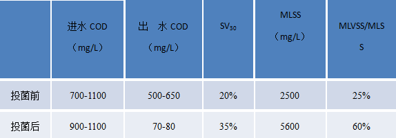 1.通過在好氧池投加高效廢水處理菌種改善生化處理效果,提高處理效率;