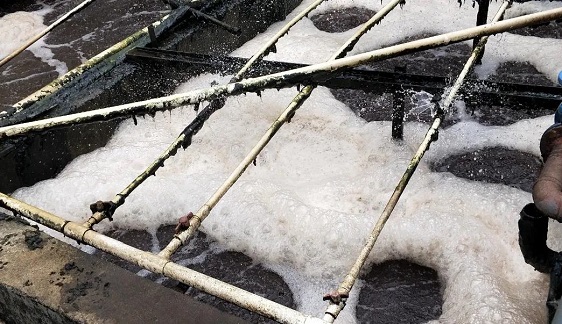 2.生化池負(fù)荷過大、微生物活性不足,好氧池出現(xiàn)大量泡沫。